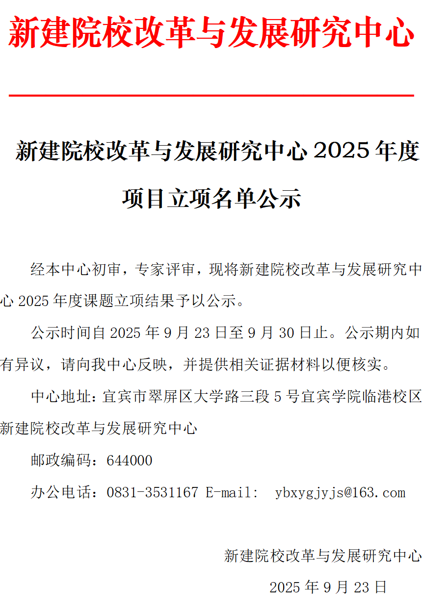 新建院校改革与发展研究中心2025年度项目立项名单公示