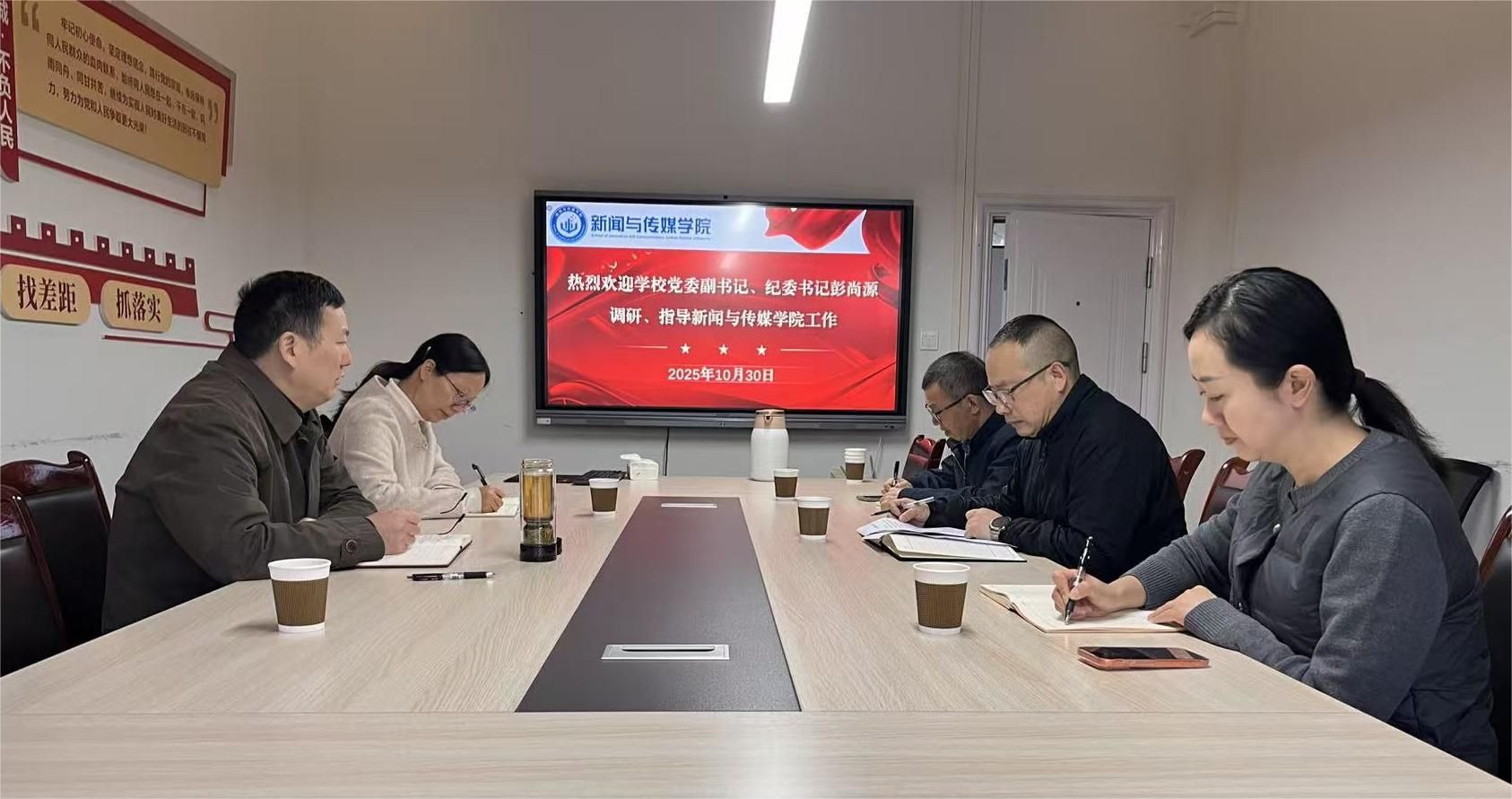 调研中,彭尚源鼓励学院发挥专业优势,在廉洁文化传播、意识形态引导等方面积极作为,为学校发展贡献传媒力量。
