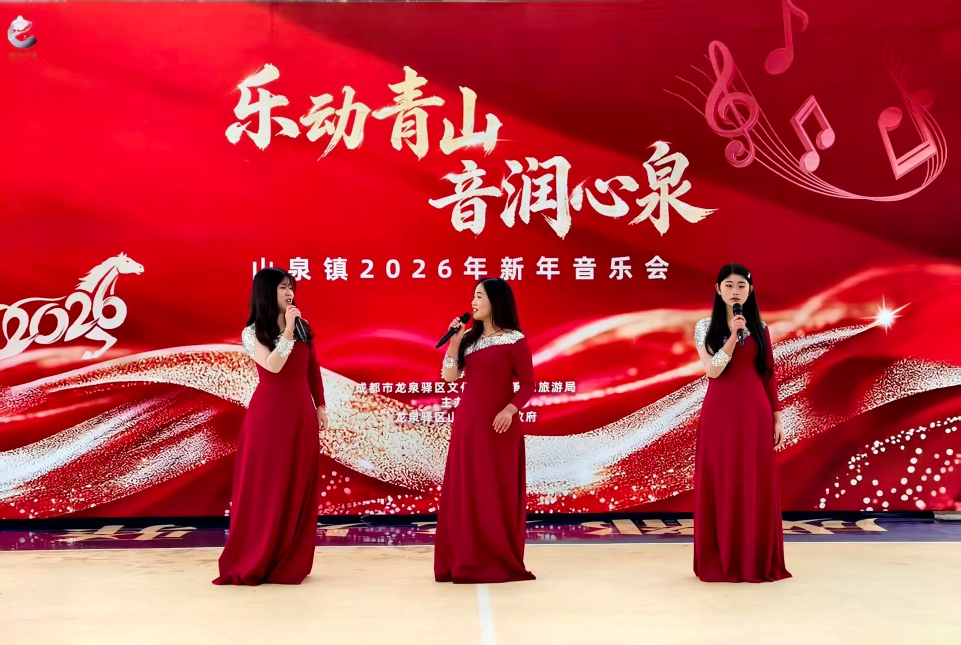 本次音乐会由龙泉驿区文化广电体育和旅游局指导,山泉镇人民政府主办。学院副院长门涛、李雅兰,学生书记伏雪涛、党支部书记樊丁等师生党员共同参与活动组织与现场服务保障工作,在舞台统筹、流程协调、现场秩序维护及宣传支持等环节发挥了积极作用。音乐会以群众喜闻乐见的文艺节目为载体,营造了欢乐祥和的新年氛围,受到社区居民广泛好评。