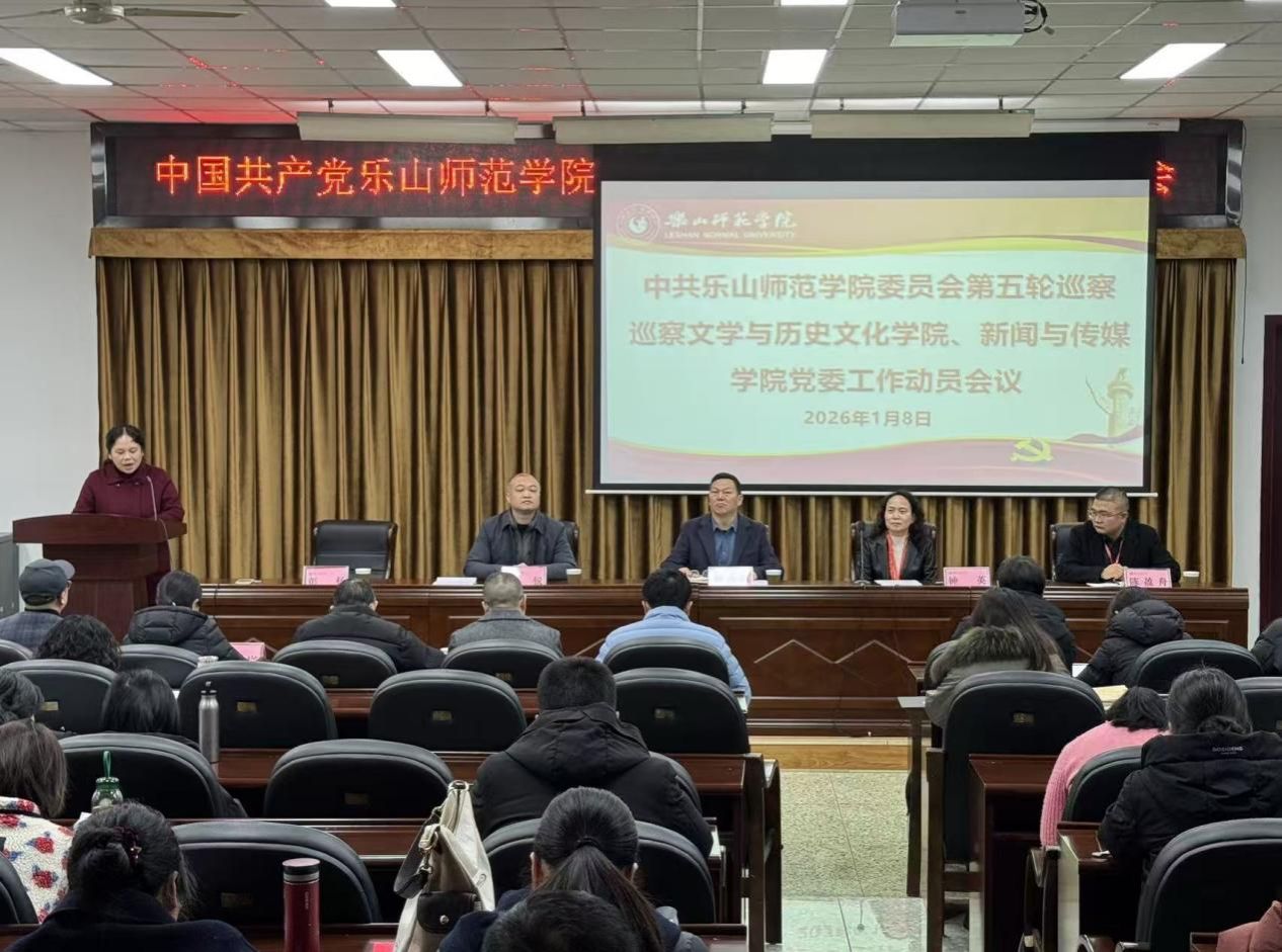 本网讯(文/吴雨洁 图/杨阳)根据学校党委巡察工作部署,2026年1月8日,党委第五轮巡察第一巡察组巡察文学与历史文化学院党委、新闻与传媒学院党委工作动员会召开。